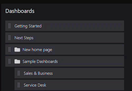 To change the default homepage click ☰ > Edit Navigation and drag the dashboard you want to become the start page to the top of the list of dashboards. Click on the SquaredUp logo, it will show the dashboard you placed at the top of navigation list.